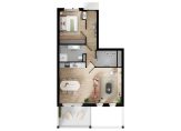 De slaapkamer aan de achterzijde van je appartement biedt een mooi uitzicht over de groene binnentuin. De slaapkamer biedt voldoende ruimte voor een grote kastenwand. De badkamer is uitgerust met een douchehoek, wastafel en toilet.
