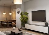 Op de begane grond vind je de grote woonkeuken met volop ruimte voor een grote eettafel. Aan de achterzijde is een fijne afgesloten bergruimte waar je meteen je spullen kwijt kunt als je thuiskomt. Op zoek naar werkruimte? Dat kan, de keukenruimte kan als werkkamer ingericht worden als de keuken naar de eerste verdieping wordt verplaatst. Mogelijkheden genoeg! Op de eerste verdieping is de woonkamer met openslaande deuren naar je zonnige terras op het oosten, zuiden of westen. Ook is hier een grote woningbrede slaapkamer. Via een vaste trap kom je op de tweede verdieping waar nog eens twee slaapkamers en een grote badkamer zijn. Je woning is standaard uitgerust met een duurzame verwarmings- en koelingsinstallatie die ervoor zorgt dat het zomers lekker koel blijft en in de winter comfortabel warm.