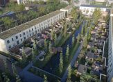 Direct achter het historische Shellgebouw en rondom de vijver, waar vroeger het legendarische zwembad Sportpark Vijfsluizen lag, komen 38 gezinswoningen. Ze hebben een statige uitstraling, die qua look en feel in het verlengde ligt van het monument. De lichte architectuur met