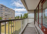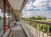 De lichte woonkamer is aan de achterzijde van het complex gelegen en beschikt door de grote hoeveelheid raampartijen over veel natuurlijk licht. Middels een loopdeur is het balkon bereikbaar, welke beschikt over een oppervlakte van ruim 8 m² en door de gunstige ligging kunt u met een vrij uitzicht heerlijk genieten van het zonnetje.