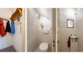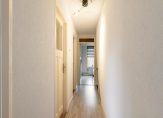 Vanaf de brede stoep achter de ruime parkeerstroken stapt u de entree binnen. Via de tocht hal en lange hal met garderoberuimte, meterkast en vergrote toiletruimte met hangend closet en hand wasbakje komt u binnen in de woonkamer.