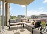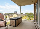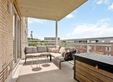 Royaal vrij hangend balkon voor veel privacy van circa 15 m² op het zonnige westen met elektra, verlichting en zicht op de omgeving met naast gelegen singel en groen.