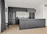 – Moderne mat zwarte open keuken uit 2025;