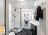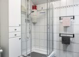 – Keurige badkamer voorzien van douchecabine, wastafelmeubel en toilet;
