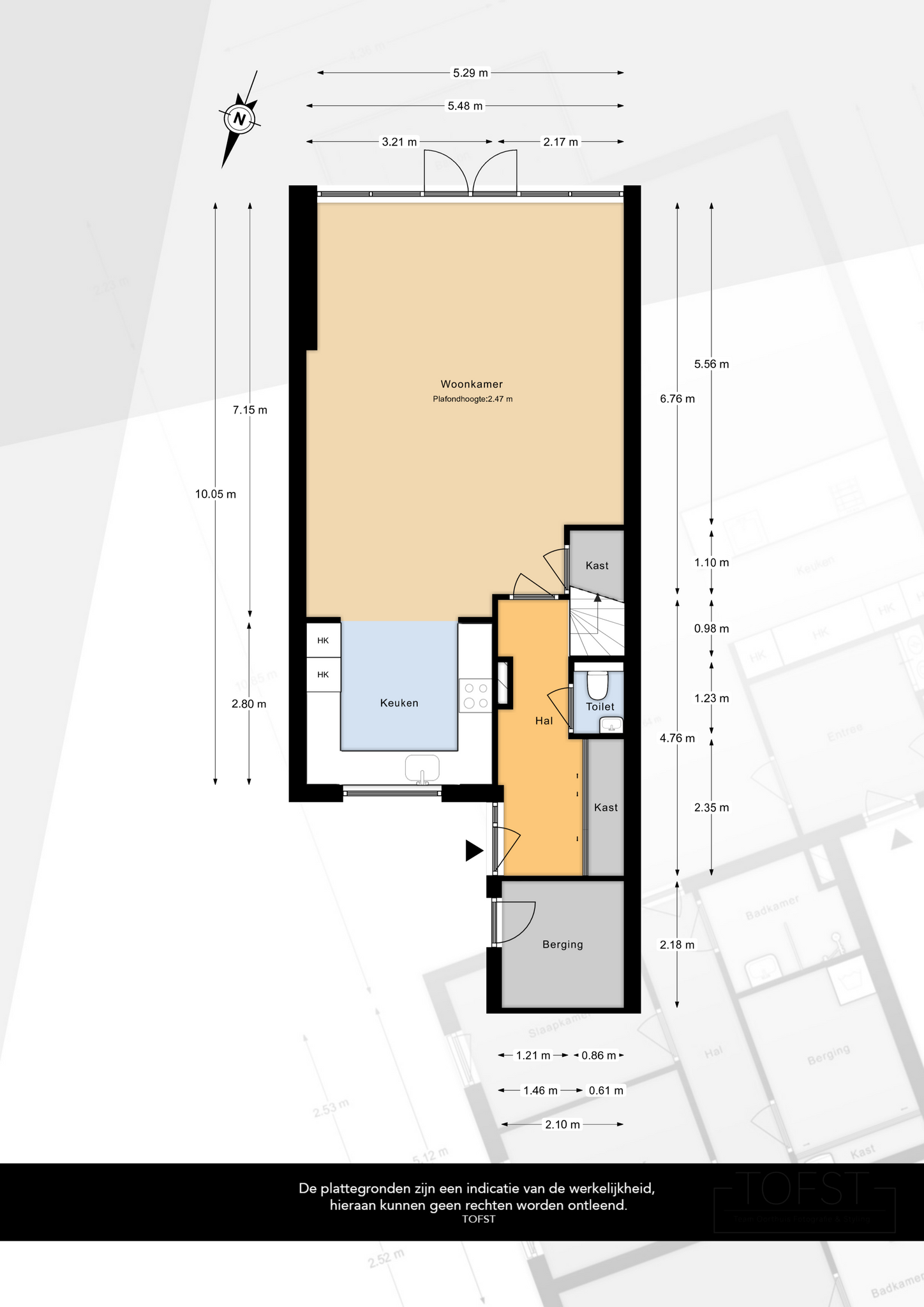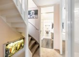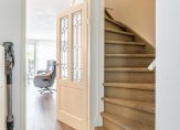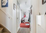 Entree onder luifel, ruime ontvangsthal met vaste schuif wandkast voorzien van meterkast, toilet en trapopgang naar de eerste verdieping;