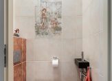 Keurige badkamer circa 4,5 m² voorzien van douchecabine, wastafelmeubel met spiegelkast, 2e toilet, raam voor natuurlijke ventilatie en mechanische afzuiging;