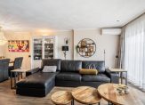 Uitgebouwde en tuingerichte woonkamer circa 38 m² voorzien van airconditioning, heteluchtverwarming en dubbele openslaande deuren naar de achtertuin;
