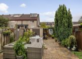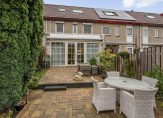 Zonnige achtertuin circa 10 meter diep met zonnige terras op het zuiden voorzien van zonwering, waardoor u op elk gewenst moment van dag van de zon of schaduw kunt genieten. Verder is er ook een berging en een achteruitgang;