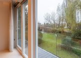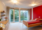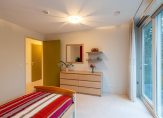Aan de voorzijde is de stijlvolle master bedroom 16 m² met een deur naar het balkon op het zonnige zuiden.. Hier valt u na een lange werkdag heerlijk in slaap, omringd door de rust van een serene groene omgeving.