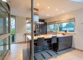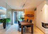 De eetkamer en keuken zijn gescheiden, maar komen samen door de glazen wand. Met een oppervlakte van circa 24 m² en een uitstekende tuinconnectie is dit een ruimte waar het prettig is te verblijven. Nodig vrienden en familie uit voor een heerlijk diner, een high tea of een goed gesprek aan tafel. De achterdeur geeft toegang tot de tuin.