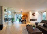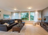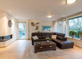De glazen pui met taats deur verbindt de woonkamer van circa 44 m² met de keuken, voorzien van een sfeervolle gashaard bij het zitgedeelte. De vele ramen aan drie zijden zorgen voor veel lichtinval. Geniet van een goed glas wijn, uw favoriete muziek, een goede film en het dansen van de vlammen in de haard. De achterdeur geeft toegang tot het betonnen terras.