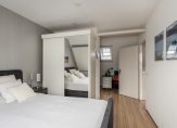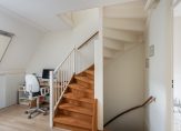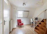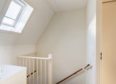 Ruime overloop, ideaal te gebruiken als separate werkplek met dakraam met luik voor verduistering, toegang tot badkamer en 2 slaapkamers. Op de overloop is de cv-combiketel gesitueerd. De gehele verdieping is keurig afgewerkt met een moderne hout look laminaatvloer.