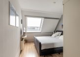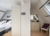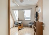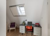 Overloop met dakraam en toegang tot 2 slaapkamers, mogelijk te verdelen in 3 slaapkamers. De gehele verdieping is keurig afgewerkt met een moderne hout look laminaatvloer en dakramen met dakluiken voor verduistering.