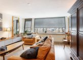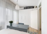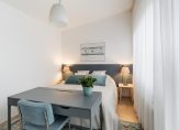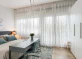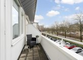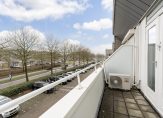 De hoofdslaapkamer met extra hoog plafond is aan de voorzijde van de woning gelegen en beschikt over een woonoppervlakte van bijna 14,5 m². Deze fijne lichte kamer is eveneens voorzien van strakke wand- en vloerafwerking, een groot zonnig balkon op het zuiden, airconditioning en houten kozijnen met dubbel glas.