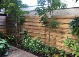 De achtertuin beschikt over een diepte van maar liefst bijna 20 meter en is voorzien van een elektrisch op afstand bedienbaar zonnescherm, vrijstaande houten berging en achterom.