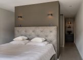 De slaapkamers met moderne badkamer zijn bereikbaar vanuit een eigen inloopkast. Ook de slaapvertrekken zijn luxe afgewerkt met dezelfde mooie grote plavuizen vloer en luxe tapijt voorzien van hoge plinten, fraai stucwerk afwerking, inbouwarmaturen en aangename vloerverwarming, maar ook verkoelende airconditioning.