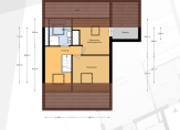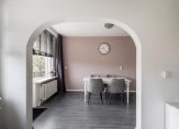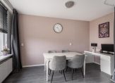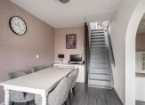 In de eetkamer bevindt zich een trap naar de zolderverdieping.