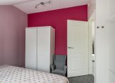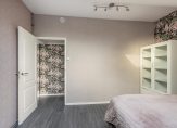 De slaapkamer is gelegen aan de voorzijde en heeft een een moderne hout look laminaatvloer.