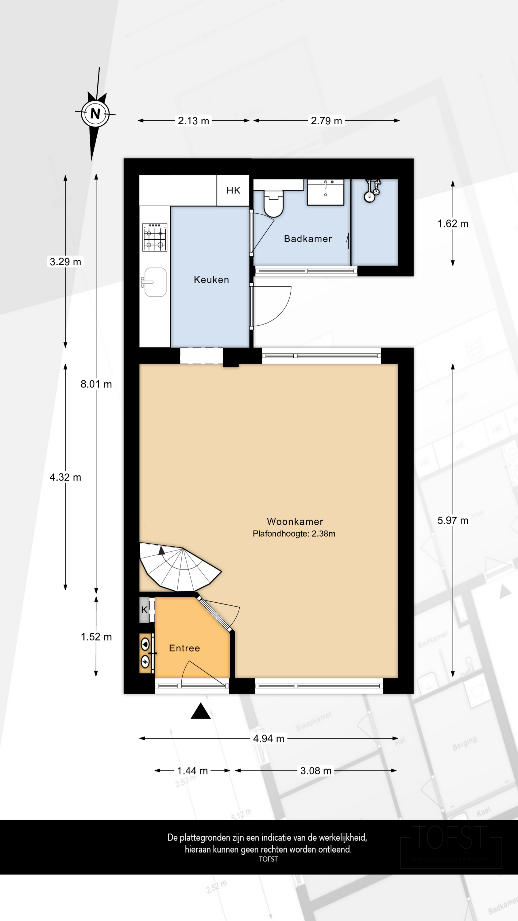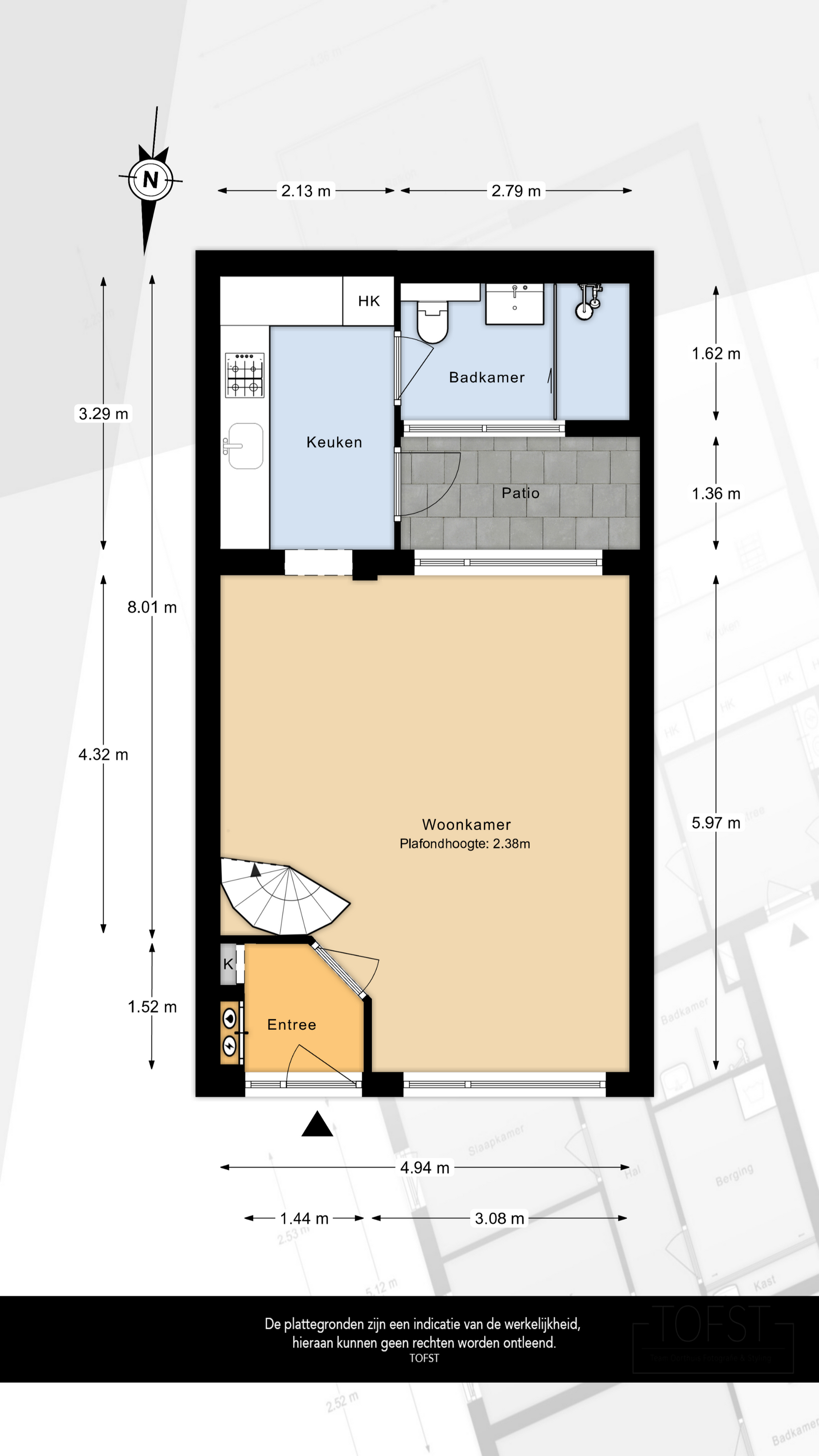 Middels de entree van de woning kom je binnen in de ontvangsthal met meterkast en bergruimte.