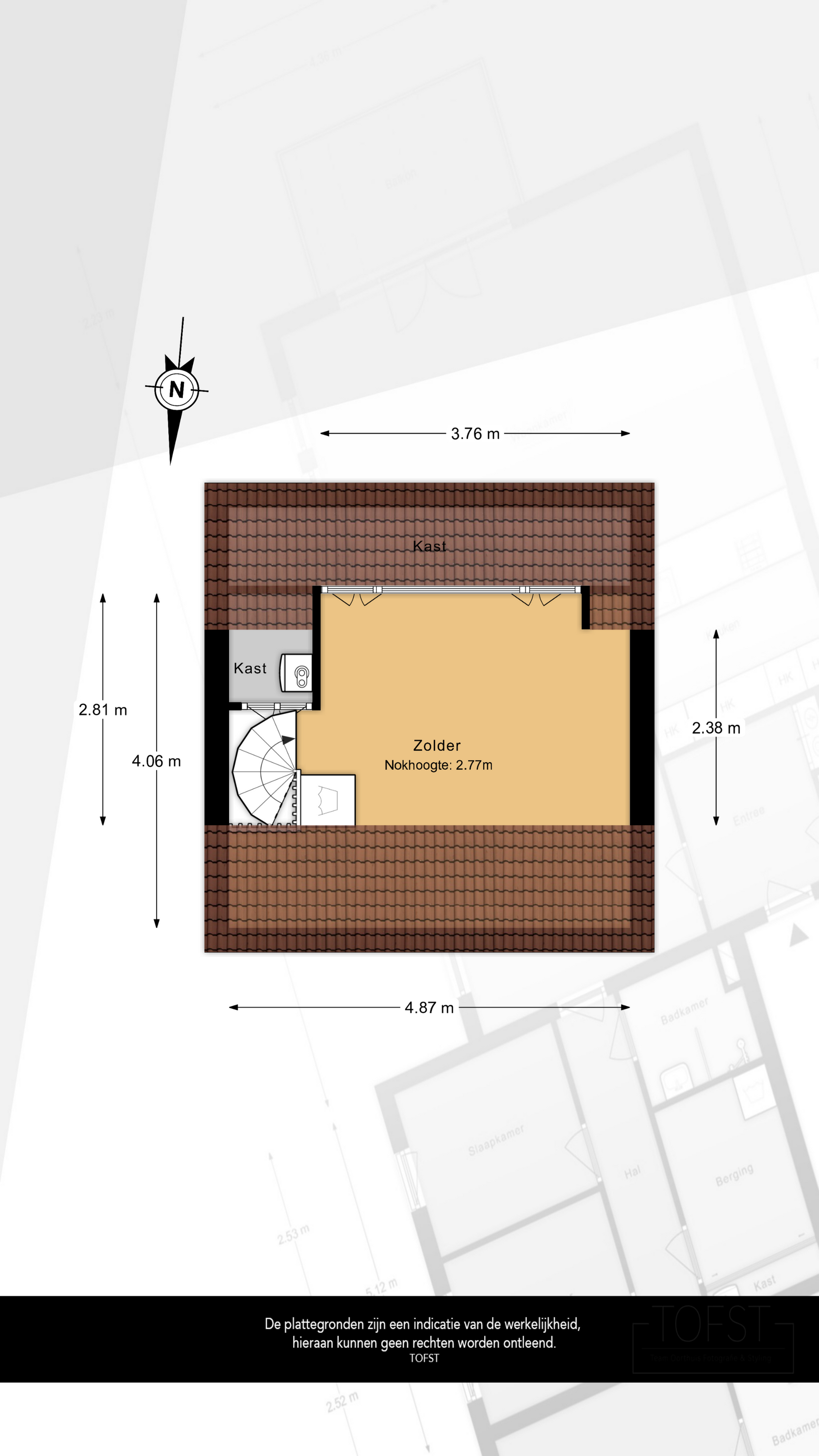 Via de open trap vanaf de overloop is er toegang tot de derde kamer. Hier bevindt zich een kast met opstelling van de cv ketel. Deze verdieping is eveneens voorzien van een laminaatvloer.