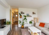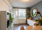 De lichte woonkamer is aan de achterkant van het appartement gelegen. Deze fijne ruimte beschikt door de grote hoeveelheid raampartijen over veel natuurlijk lichtinval en geeft een vrije uitkijk. Deze heerlijke plek is voorzien van een moderne wand- en vloerafwerking en middels een loopdeur is het balkon bereikbaar.