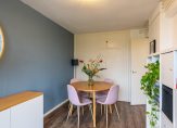 Beide kamers zijn voorzien van een moderne wand- en vloerafwerking. Slaapkamer 2 wordt door de huidige eigenaren gebruikt als eetkamer, maar is naar eigen wens in te richten.