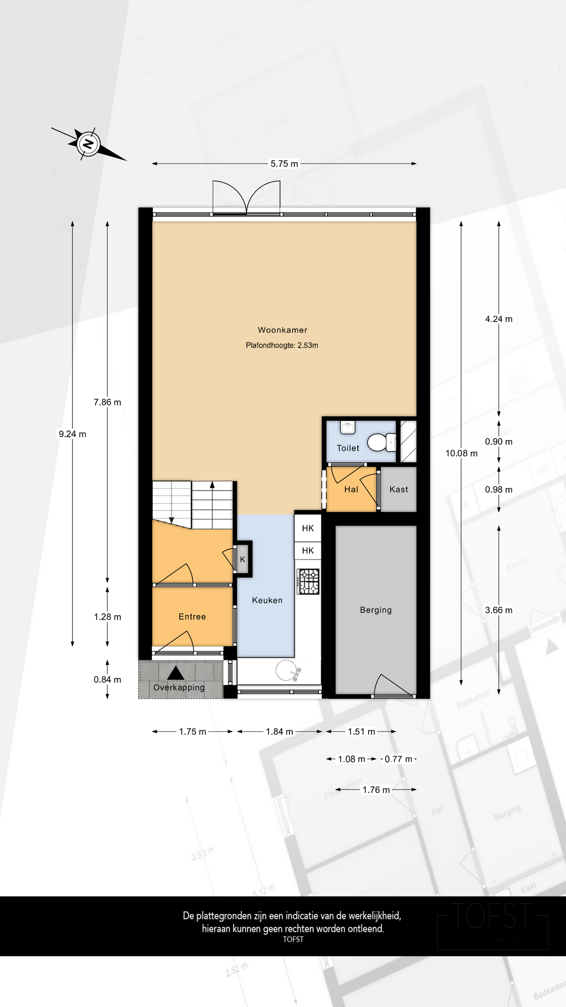 Middels een tochtportaal met garderoberuimte en speelse trap wordt u de toegang verstrekt tot de lichte woonkamer met open keuken.