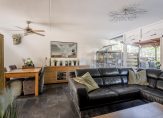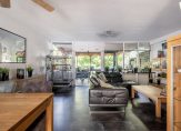 De tuingerichte woonkamer beschikt over een enorme hoeveelheid raampartijen en middels openslaande deuren wordt u de toegang verstrekt tot de zonnige achtertuin gelegen op het zuidwesten.