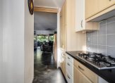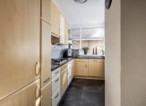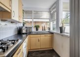 De open keuken is gelegen aan de voorzijde van de woning en beschikt over een keurig keukenblok in hoekopstelling welke onder andere is voorzien van een koel-/vriescombinatie, vaatwasser, vier pits gaskookplaat met afzuigkap en een handige apothekerskast.