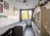 Beide slaapkamers zijn aan de achterzijde van de woning gelegen en voorzien van een keurige laminaatvloer en hard houten kozijnen met dubbel glas.
