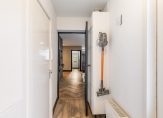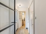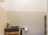 Separaat is een deels betegelde toiletruimte aanwezig met hierin een hangend closet en fontein. In een losse kast zijn tot slot de aansluiting van de wasmachine aanwezig en tevens is de cv-combiketel uit 2023 hier opgesteld. Tevens is middels een loopdeur vanuit deze hal ook de toegang tot de achtertuin beschikbaar.
