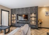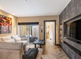 De woonkamer beschikt over een moderne cinewall met sfeervolle vakken en inbouwspots en middels de in 2020 vernieuwde kunststof schuifpui wordt de toegang tot de achtertuin verstrekt.