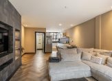 Vanuit de centrale hal komt u middels een zwarte staallookdeur uit in de woonkamer met open keuken. De gehele begane grondvloer is voorzien van een moderne visgraatvloer met vloerverwarming en hoge plintafwerking, de wanden zijn strak afgewerkt en de kozijnen zijn uitgevoerd in kunststof met dubbel glas.