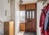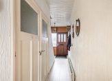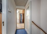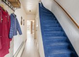 Entree gang/hal met garderoberuimte, trapkast, meterkast, keurig toilet en trap naar de eerste verdieping.