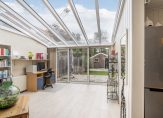 – geweldige living circa 47 m² met houthaard, serre en schuifpui naar diepe achtertuin;