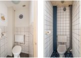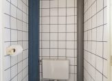 Separaat toilet betegeld tot het plafond met natuurlijke luchtafvoer.