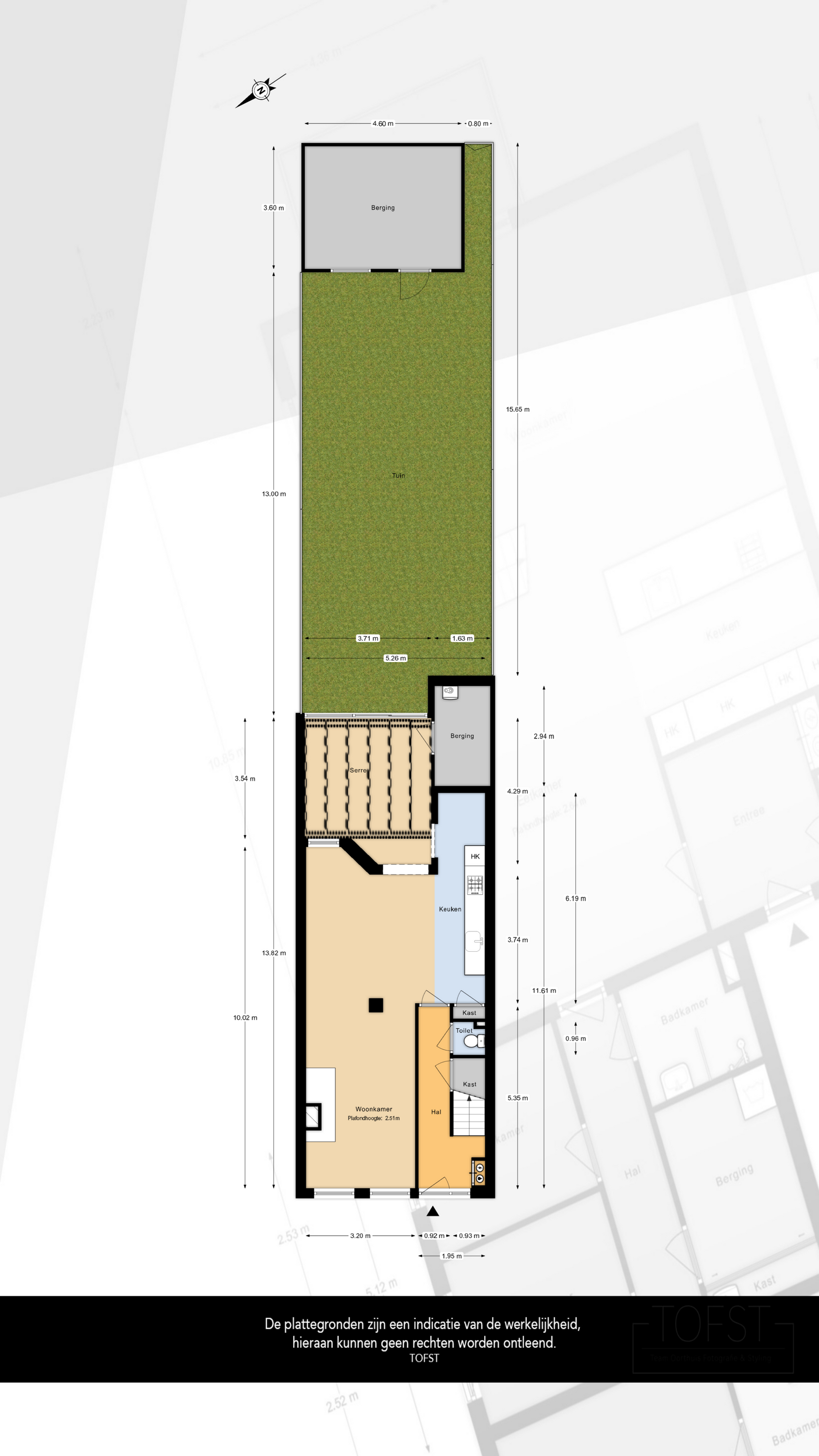 – heerlijke 16 meter diepe en onderhoudsarme achtertuin met berging en achterom;