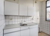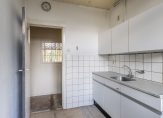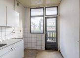 Eenvoudige keuken aan de achterzijde circa 6 m² met een deur naar het balkon.