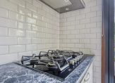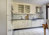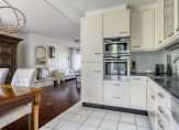 Keurige open keuken circa 8 m² voorzien van 5-pits gas kookplaat met afzuigschouw, oven,magnetron, vaatwasser, koel-vriescombinatie, spoelbak en een deur naar de achtertuin.