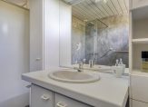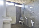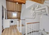Ruime overloop voorzien van wastafelmeubel, dakraam, wasmachine aansluiting, opstelling cv-combiketel en inpandige berging.