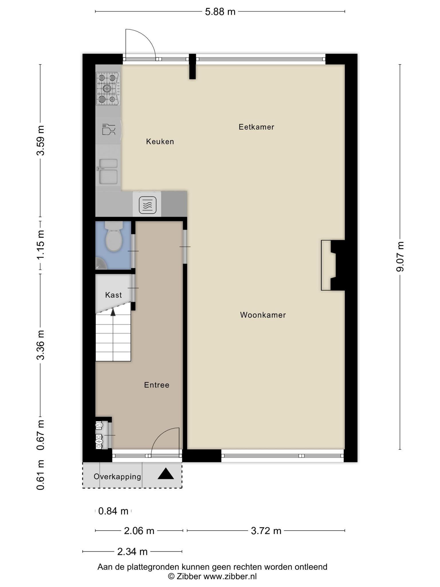 – Ruime doorzon woonkamer met open keuken van 42 m²;