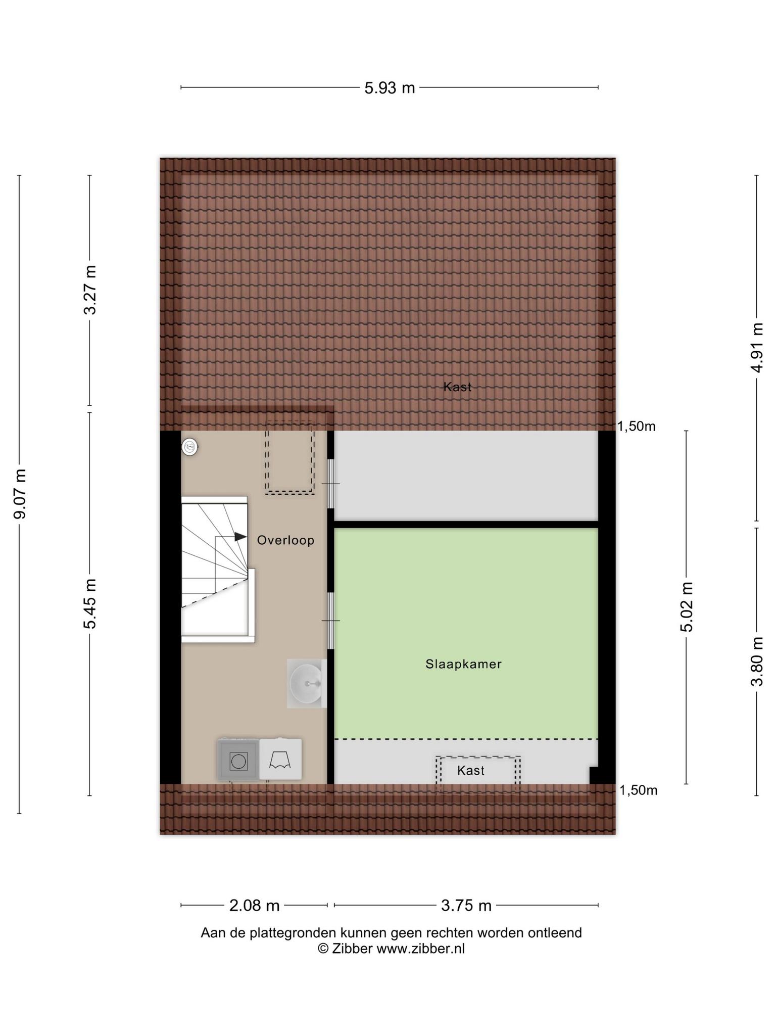 Slaapkamer 3 aan de voorzijde circa 16.5 m².