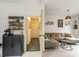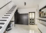 De riante ontvangsthal verzorgt de toegang tot de diverse vertrekken en is voorzien van een grote hoeveelheid opbergruimte. Middels de loopdeur wordt ook direct de toegang verstrekt tot de fijne achtertuin. Deze is gelegen op het zonnige zuidwesten, onderhoudsarm bestraat maar toch lekker groen door alle beplanting tegen de gevels en beschikt over een riante berging voorzien van elektra.