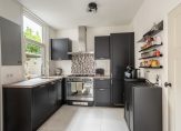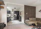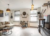 De fijne woonkamer is aan de voorzijde van het appartement gelegen en beschikt nog over authentieke glas-in-loodramen! De vloer en wanden zijn strak afgewerkt en vanuit de woonkamer is er zicht op de moderne L-vormige open keukenopstelling voorzien van een koelkast, vriezer, vaatwasser, groot gasfornuis met oven en veel kastruimte. Middels een vernieuwd kunststof raam kijk je vanuit de keuken leuk de tuin in!