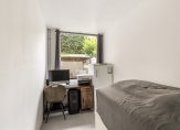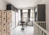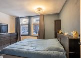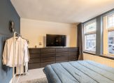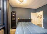 Beide slaapkamers zijn voorzien van een moderne vloerafwerking met hoge witte plinten, strakke wanden en hard houten kozijnen met dubbel glas. De hoofdslaapkamer beschikt net als de woonkamer nog over authentiek glas-in-loodramen voor een extra historische sfeer.