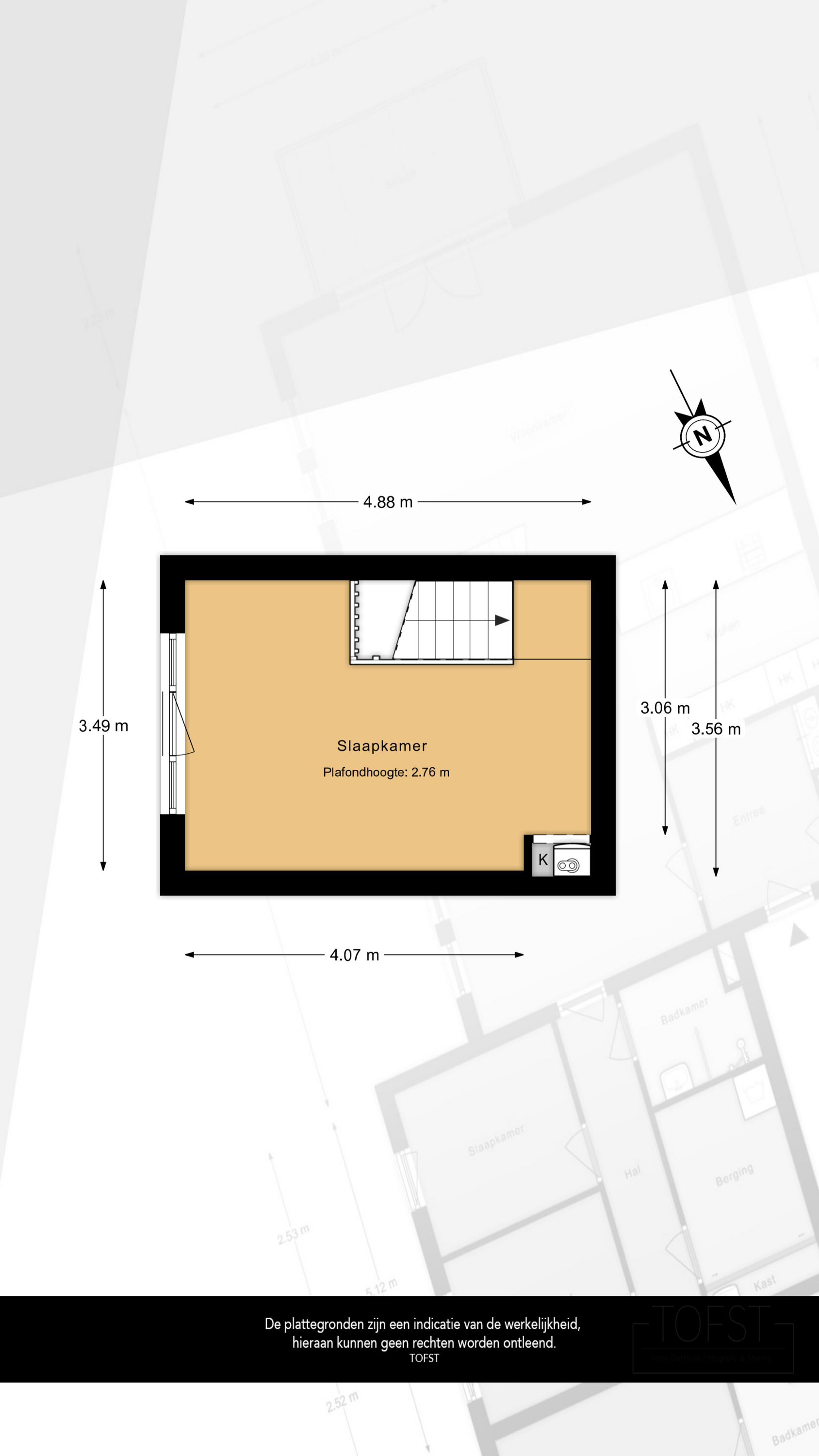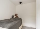 Vanuit de entreehal is middels een vaste trap de toegang tot de derde slaapkamer aanwezig. Deze ruime slaapkamer heeft een oppervlakte van ruim 17 m² en is evenals het hele huis netjes afgewerkt. In de vaste kast is de cv combi-ketel van het merk Remeha weggewerkt.