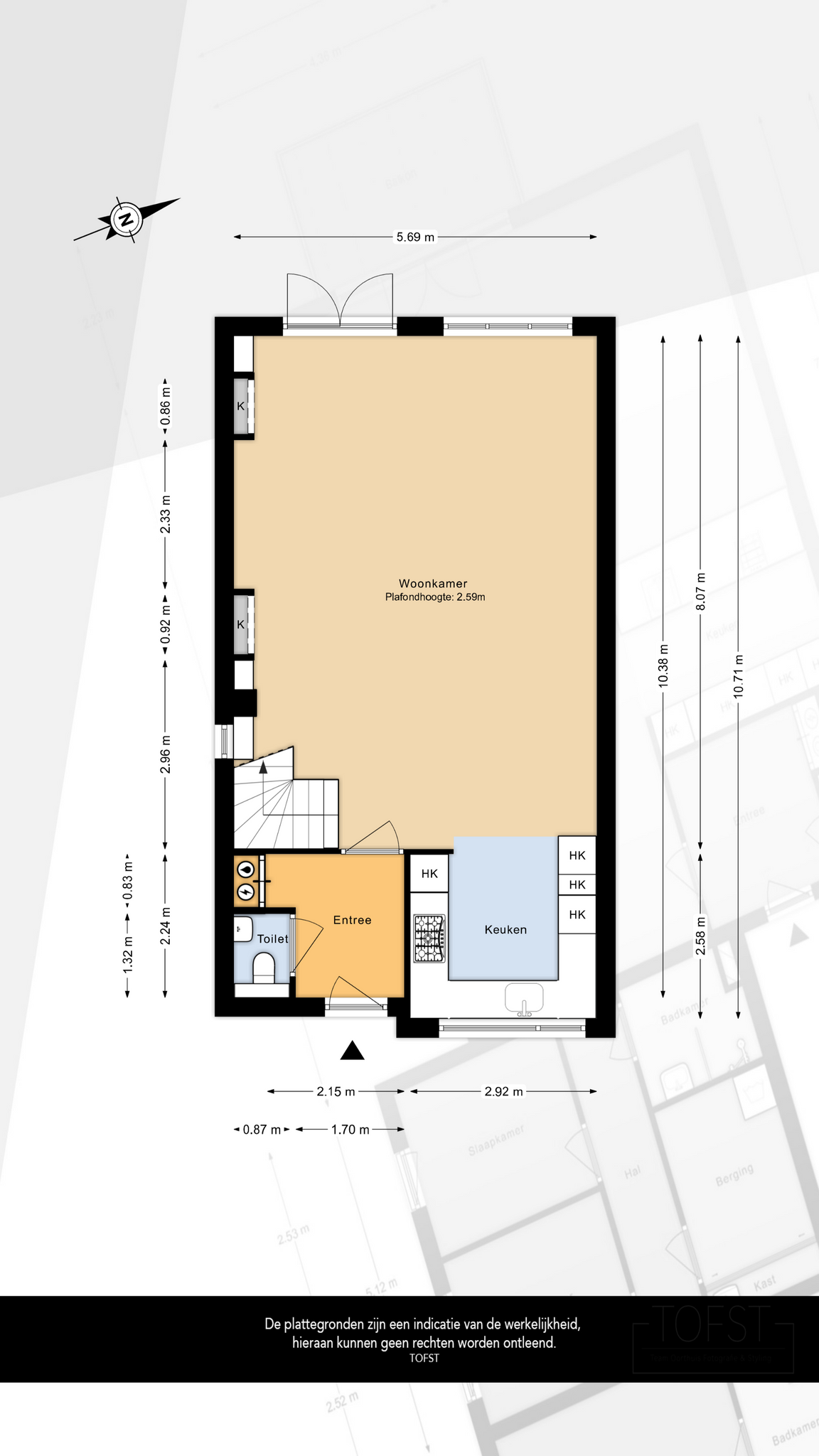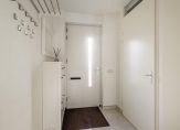 Middels het autoluwe looppad en via de keurig verzorgde voortuin komt u uit in de centrale ontvangsthal van de woning, welke is voorzien van de meterkast, garderoberuimte en deels betegelde toiletruimte met wandcloset en fonteintje.