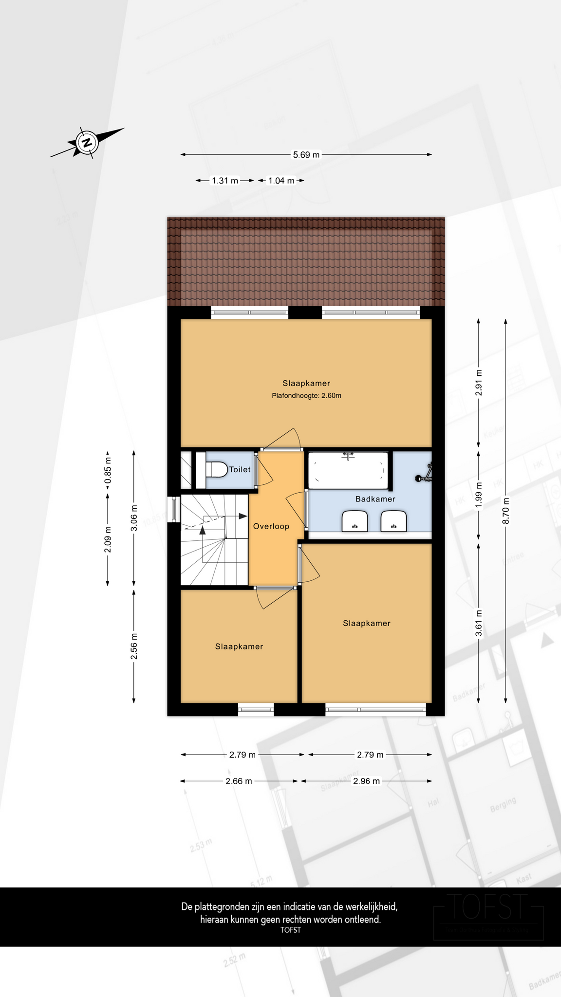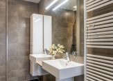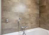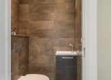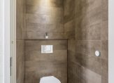 De badkamer is geheel betegeld en van alle gemakken voorzien, zoals een ligbad, inloopdouche, dubbele wastafel en designradiator. Op deze etage is een apart toilet op de overloop aanwezig.