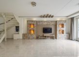 De riante woonkamer is tuingericht en vanuit de bouw met 2.40 uitgebouwd, waardoor de woning over een royale oppervlakte beschikt. De gehele begane grondvloer is voorzien van een plavuizenvloer met vloerverwarming en middels de openslaande deuren wordt de toegang tot de fijne achtertuin verstrekt.