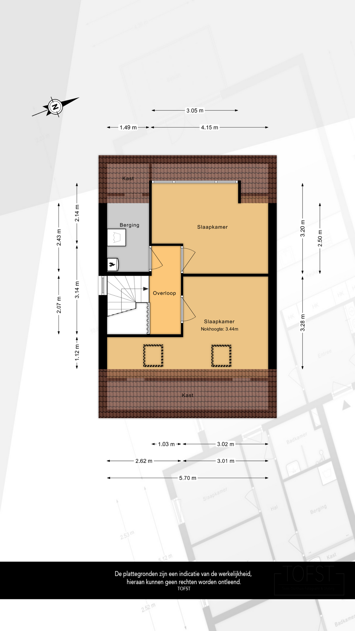 Slaapkamers twee en drie zijn aan de voorzijde van de woning gelegen en beschikken over een respectievelijk woonoppervlakte van ruim 10,5 m² en 6 m².